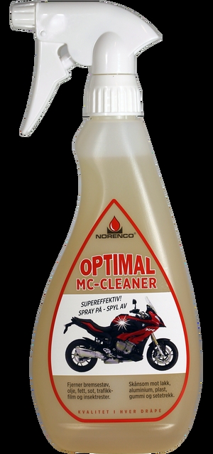 OPTIMAL MC CLEANER Supereffektiv motorsykkelvask. PrisNOK99,00 inkl. mva. Kjøp Del dette Produktinfo Supereffektiv! Spray på - Spyl av. Fjerner bremsestøv,olje, fett, sot, trafikkfilm og insektrester. Skånsom mot lakk,aluminium, plast, gummi og setetrekk.