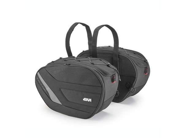 Par med myke sidevesker som kan utvides til å romme 25 + 25 liter, utviklet for å gi maksimal lastekapasitet, praktisk i bruk og sikkerhet på reiser med motorsykkelen.
