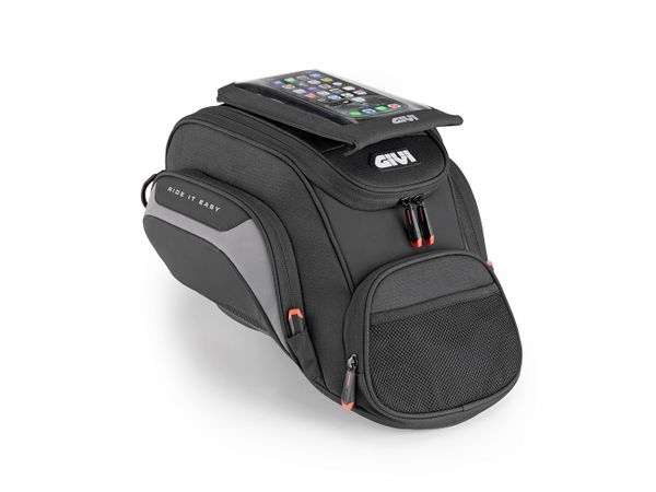 Tankveske med Tanklock-system, designet for å tilpasse seg de kraftig skrånende tankene som er typiske for maxi-enduro motorsykler.